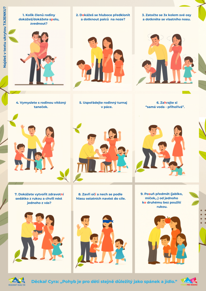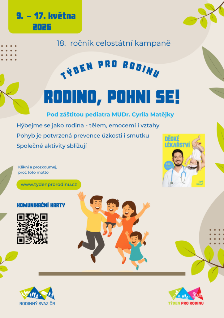 Nový ročník Týdne pro rodinu přichází s mottem „Rodino, pohni se!“. Letos propojuje fyzickou aktivitu s péčí o vztahy a připomíná, že nejde o výkon ani o sportovní výkony, ale o malé každodenní kroky, které posilují naše zdraví – tělesné i vztahové.